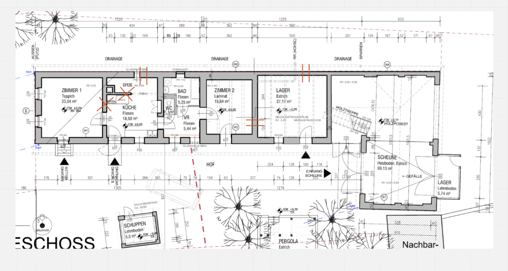 Angedacht sind zwei Durchbrüche vom Altbestand nach Norden.