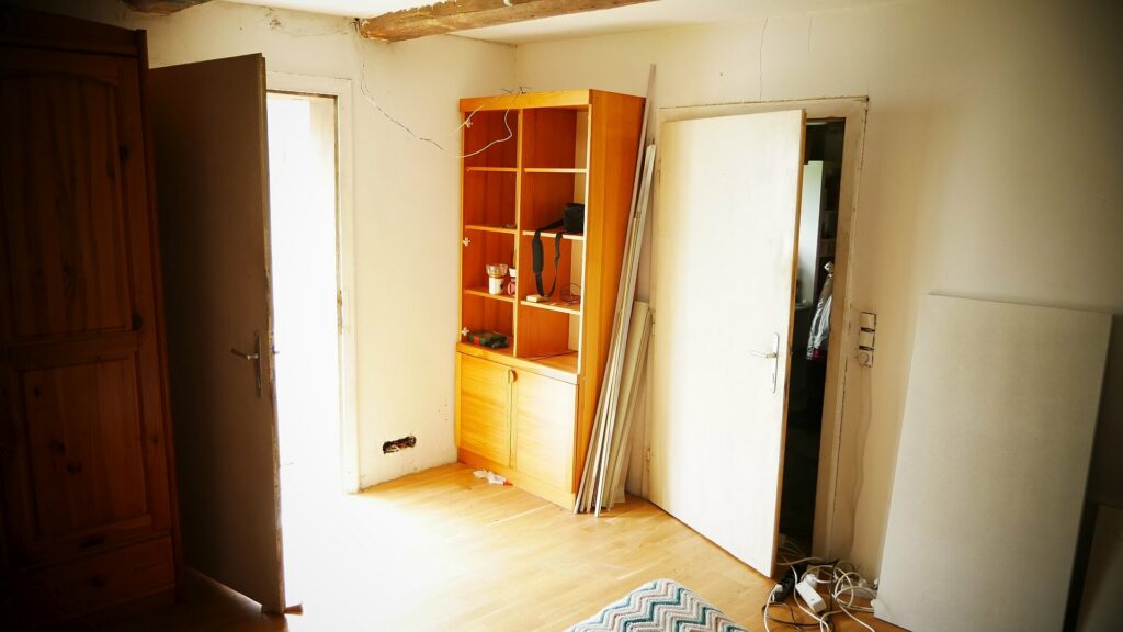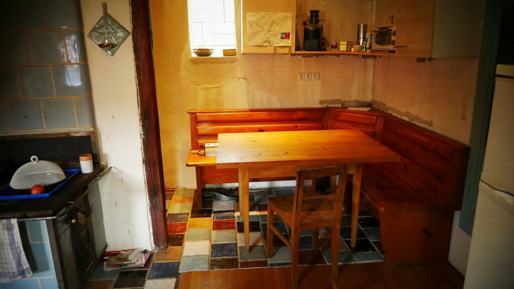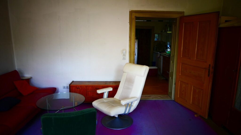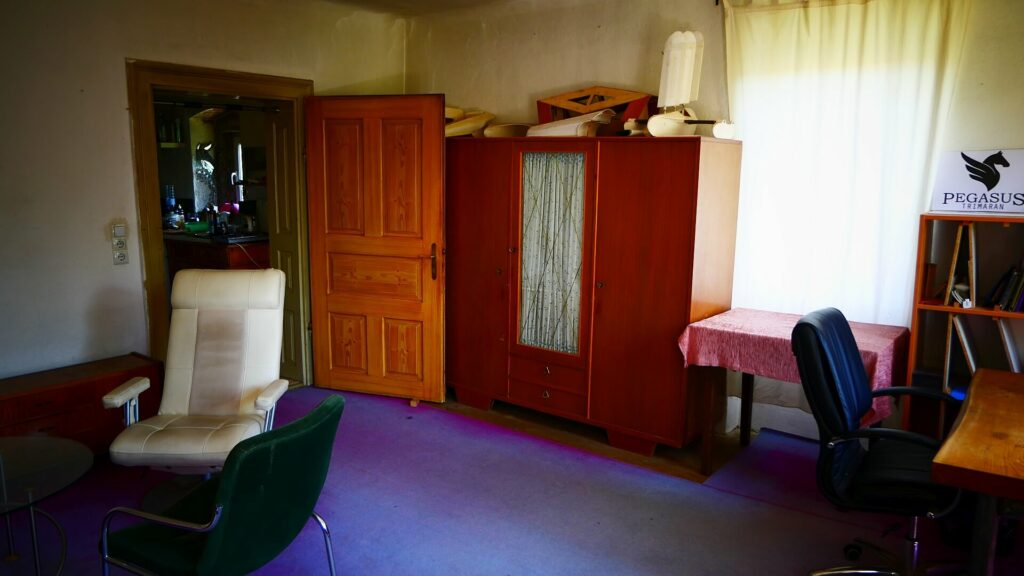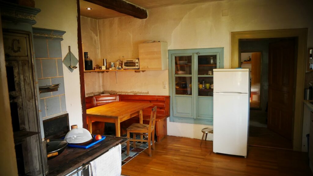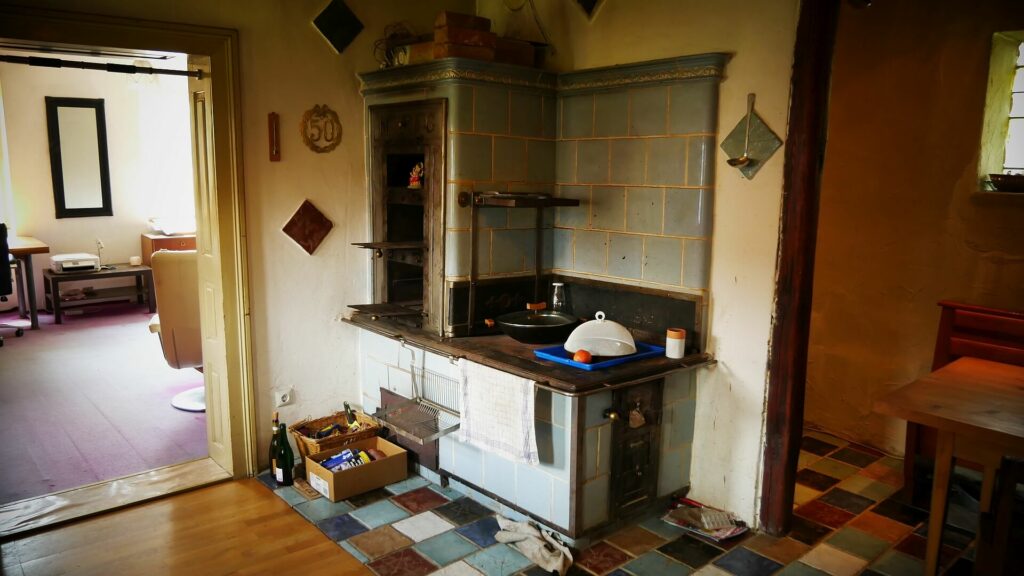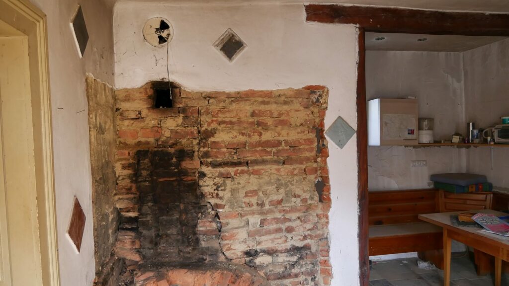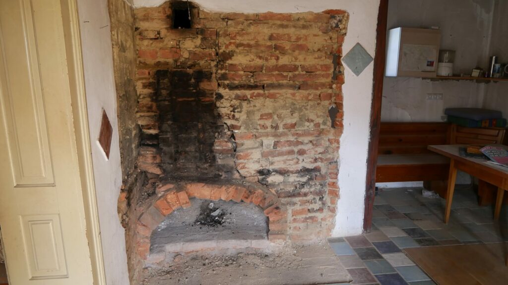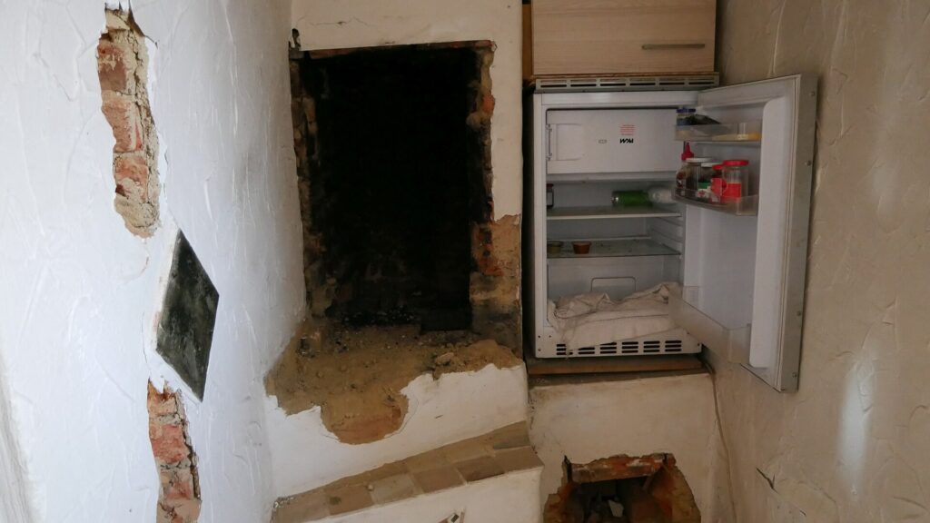 Der antique Ofen in der Küche wurde entfernt. Zimmer1 und Küche sollen zusammengelegt werden (Teilentfernung der Zwischenwand).
